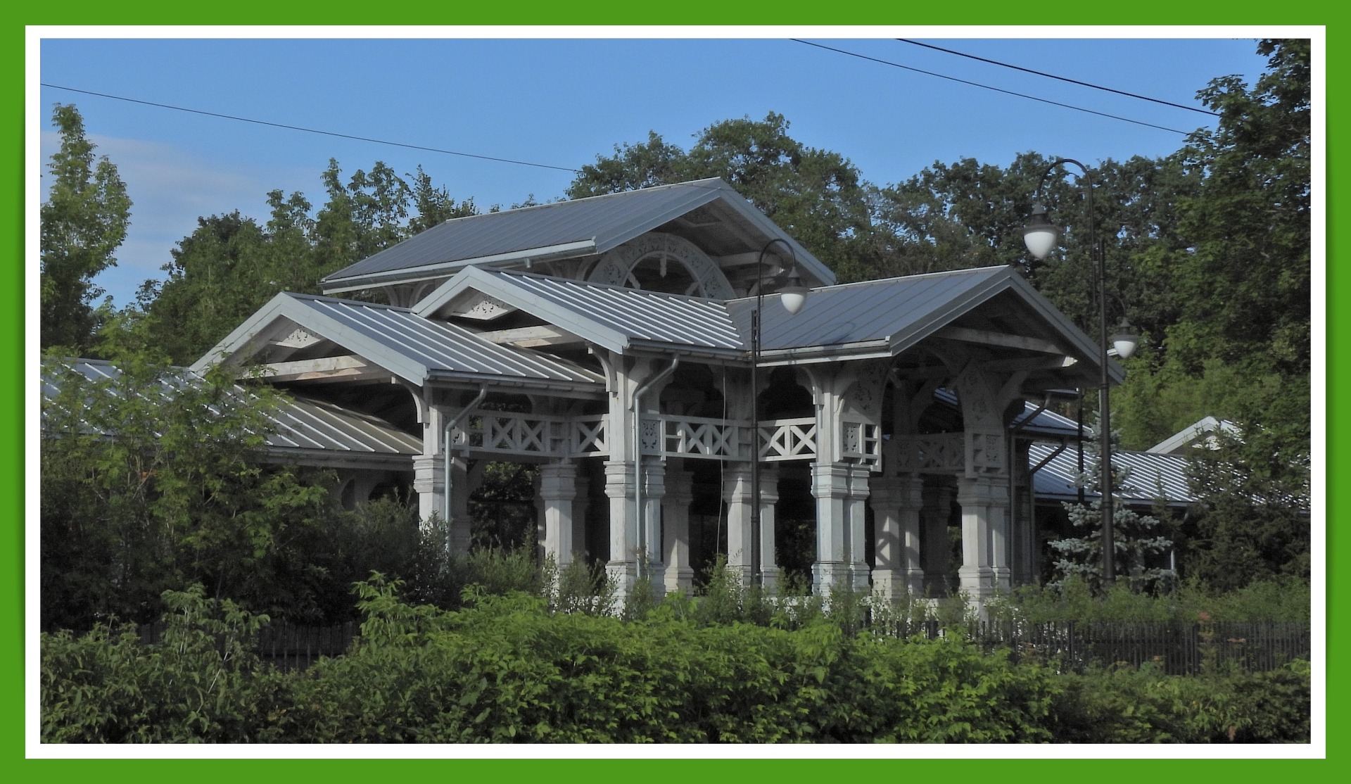 Białowieża Pałac. Zrekonstruowana w 2015 roku stacja dworca kolejowego otwartego w końcu XIX wieku. Wygląda pięknie, ale zobaczyć można tylko zza płotu. Przykre to bardzo, bo podczas poprzedniego pobytu można było wejść, zobaczyć z bliska i chyba nawet napić się kawy. Teraz zarasta na potęgę. Czemu tak się dzieje? Nie wiem. Teorii jest wiele. Podobno padła pod naciskiem niewidzialnej ręki rynku.