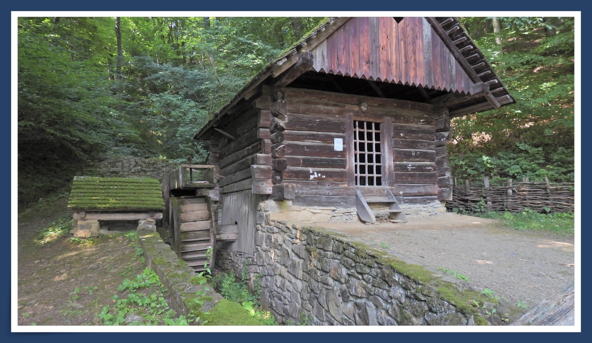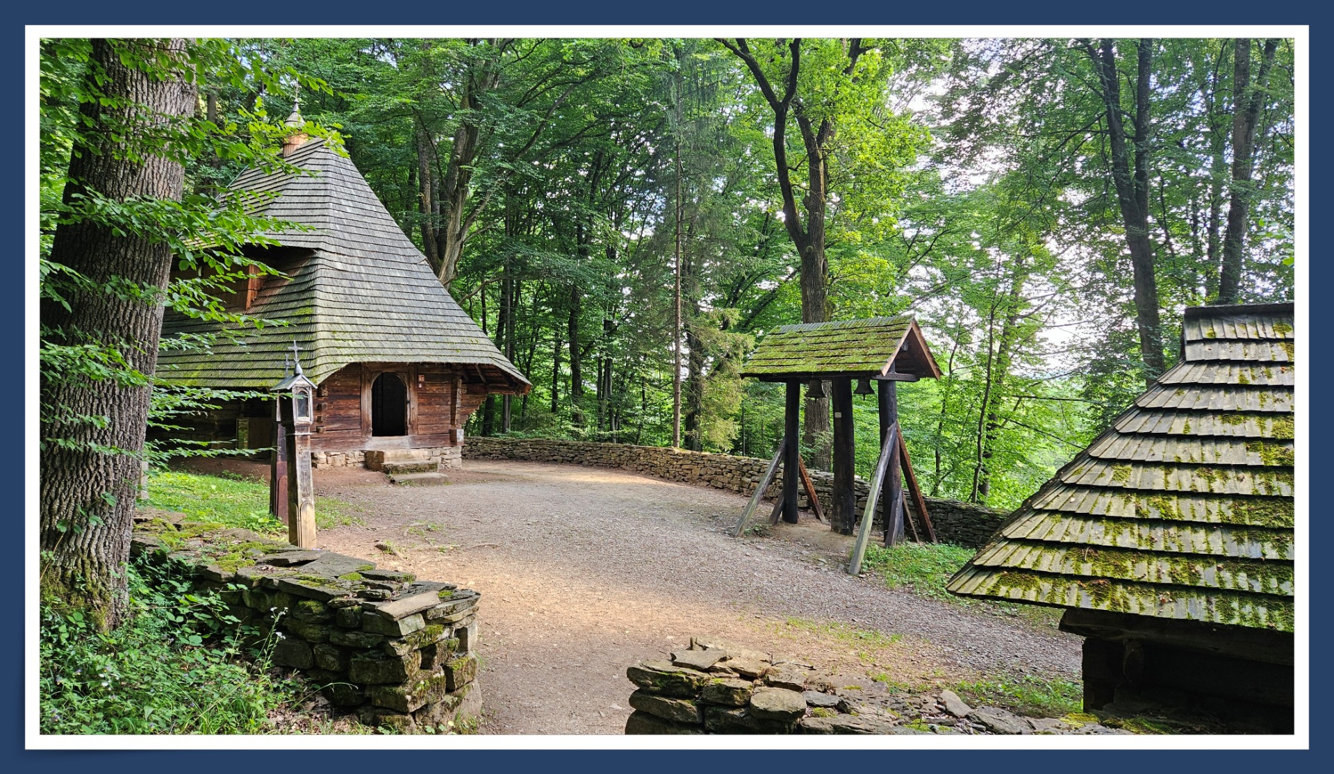 Szczęśliwie dla mnie, ze względu na nasłonecznienie i temperaturę w dniu, w którym odwiedziłem skansen, część budowli znajduje się na terenie zalesionym.