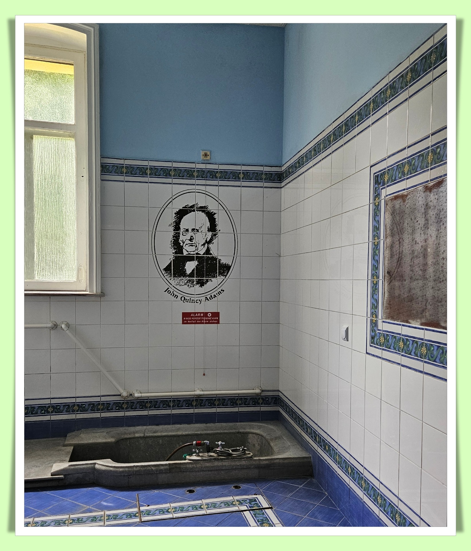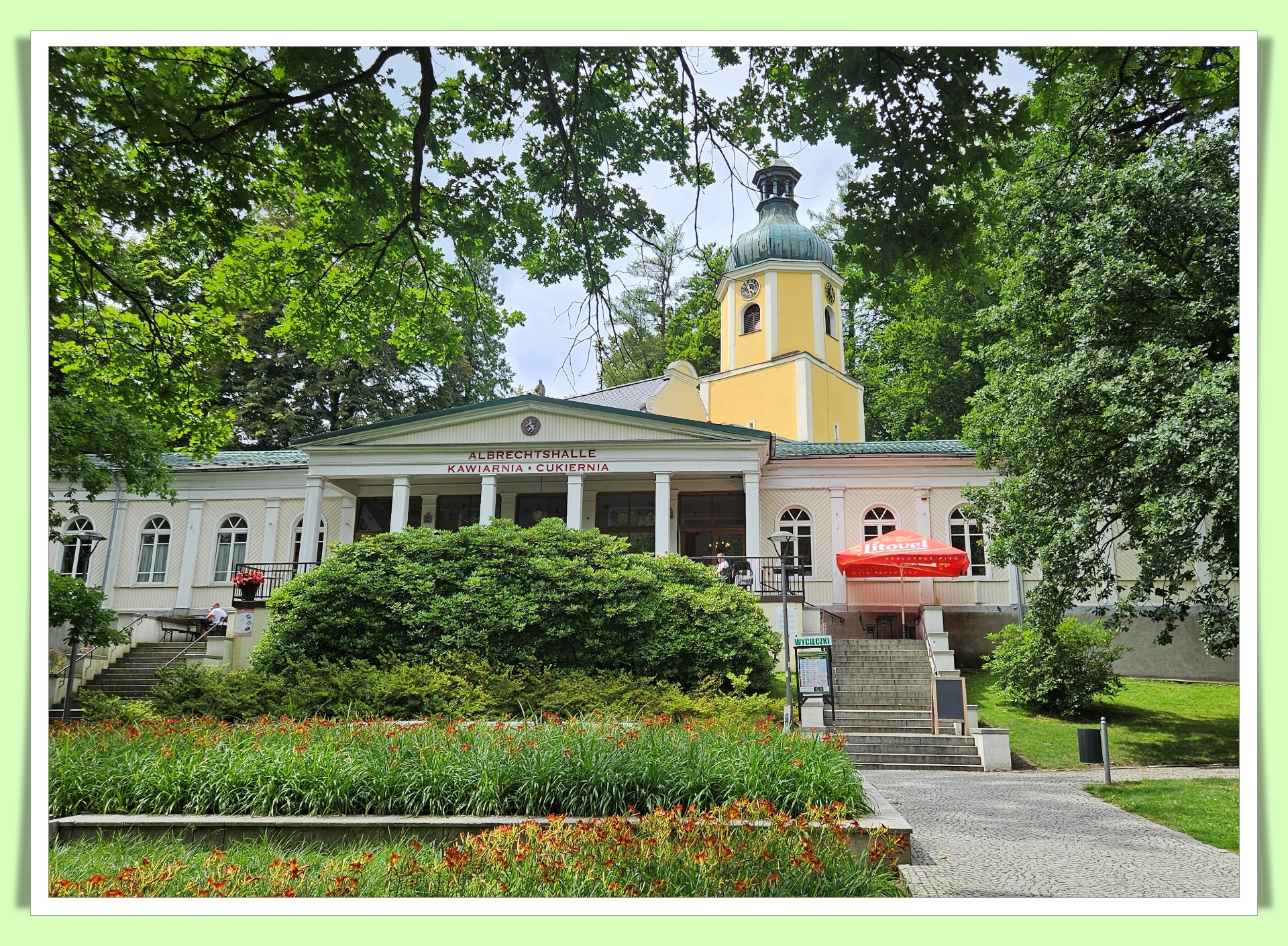 To przesławne sanatorium Wojciech nazywany też Zdrój Wojciech. Pocztówkowy nr 1 Lądka Zdroju. Powstał ponoć już w 1680 roku a obecny wygląd uzyskał w 1880. Znakomitych gości przypominają znajdujące się na parterze pokoje łazienkowe z zabiegami. Można skorzystać z zabiegu lub tylko pooglądać. Podobnie jak z basenu termalnego. Ale zdjęć tego ostatniego poszukajcie już sami. Brakło mi cierpliwości, by doczekać się na szansę pstryknięcia zdjęcia w czasie gdy zmieniają się kuracjusze po kąpieli.