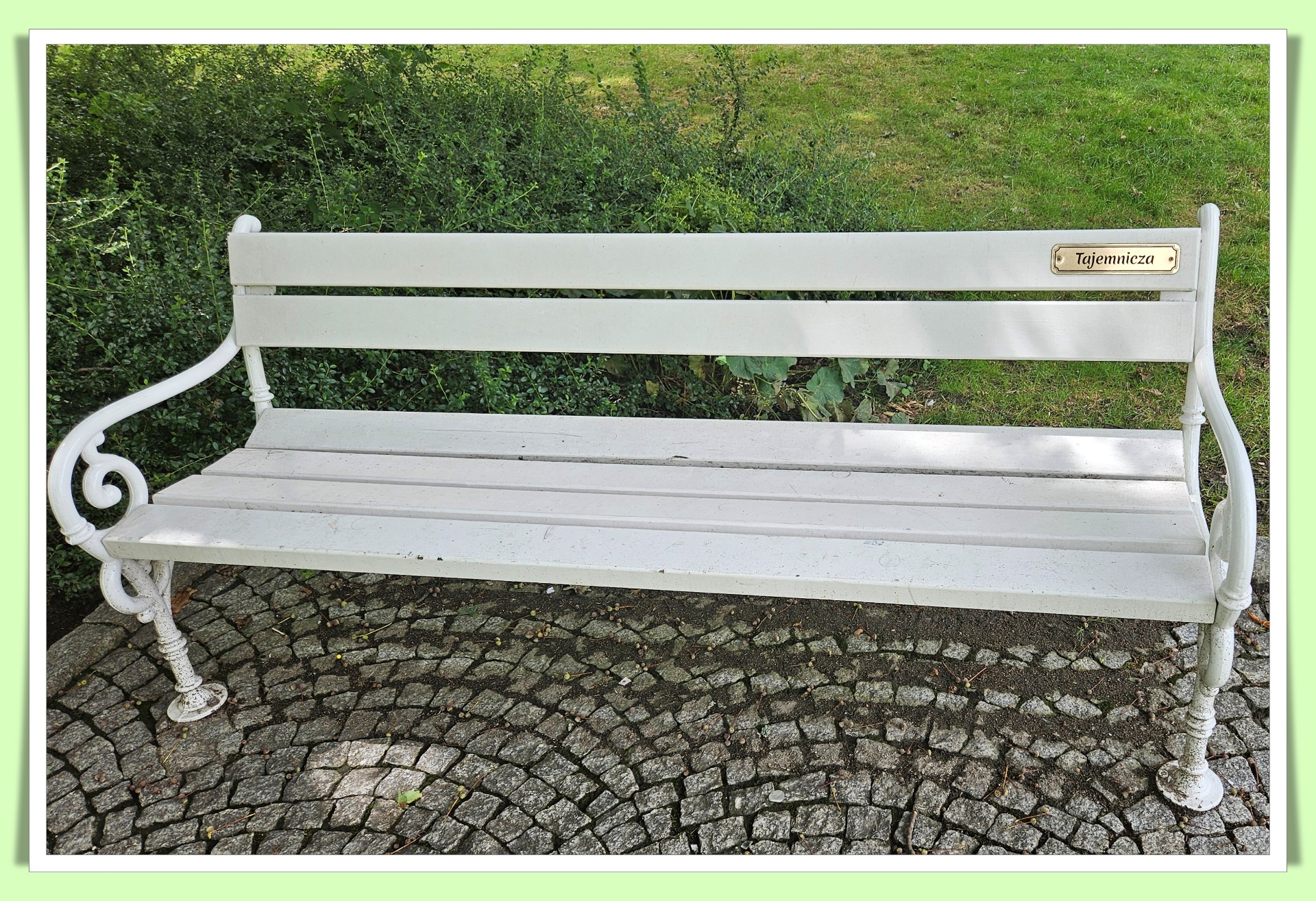 Po zabiegach lub po spacerach można skorzystać z kawiarni, która mnie zawsze pokrzepia dobrą kawą i pysznym ciastem. No ale to już moje smaki. Można też posiedzieć na opisanych ławeczkach. Taki żartobliwy drobiazg. Mnie się spodobał.