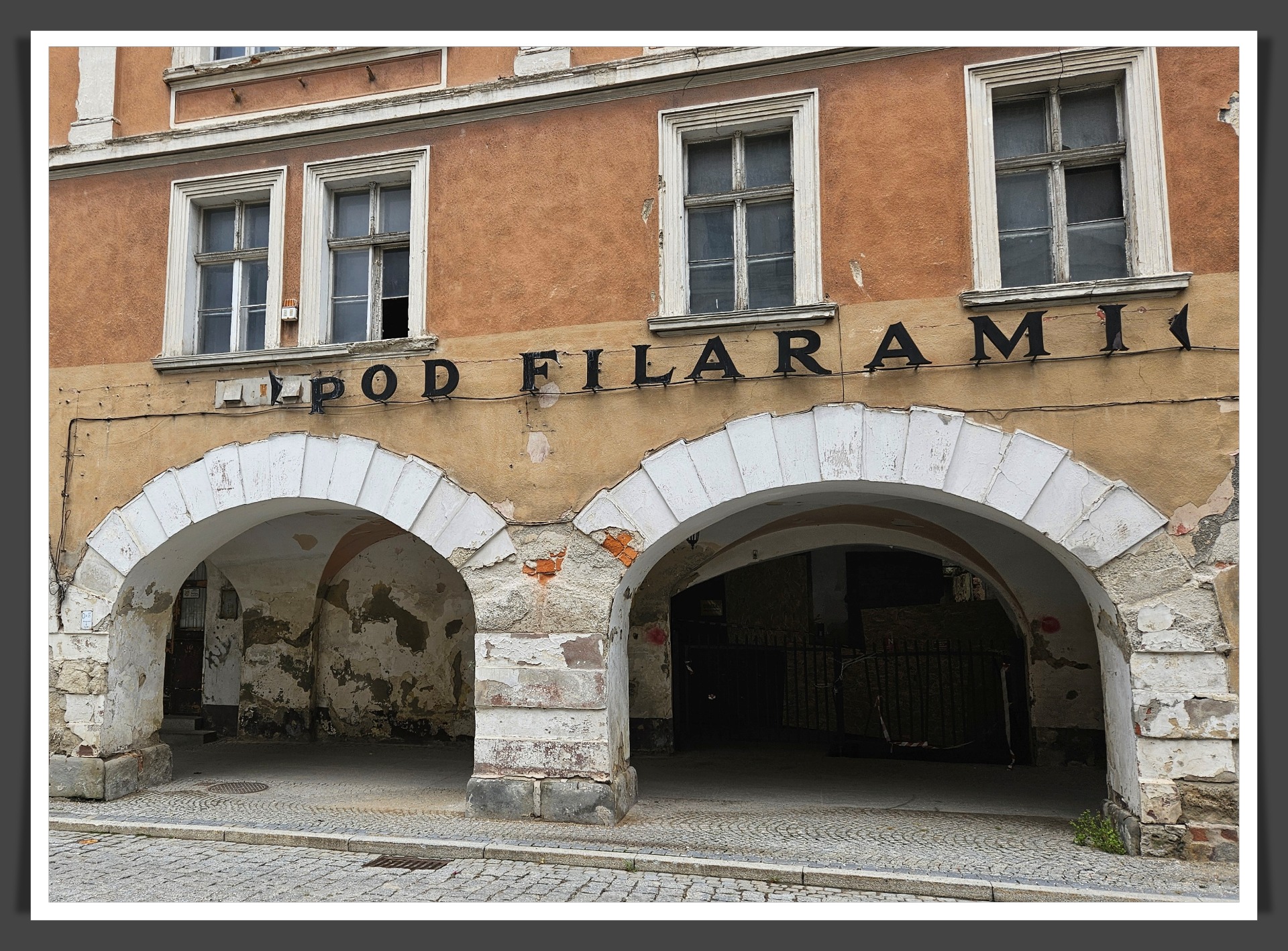 Ten budynek z arkadami czekał na odrestaurowanie. Nie wiem czy doczeka, bo jest w opłakanym stanie.