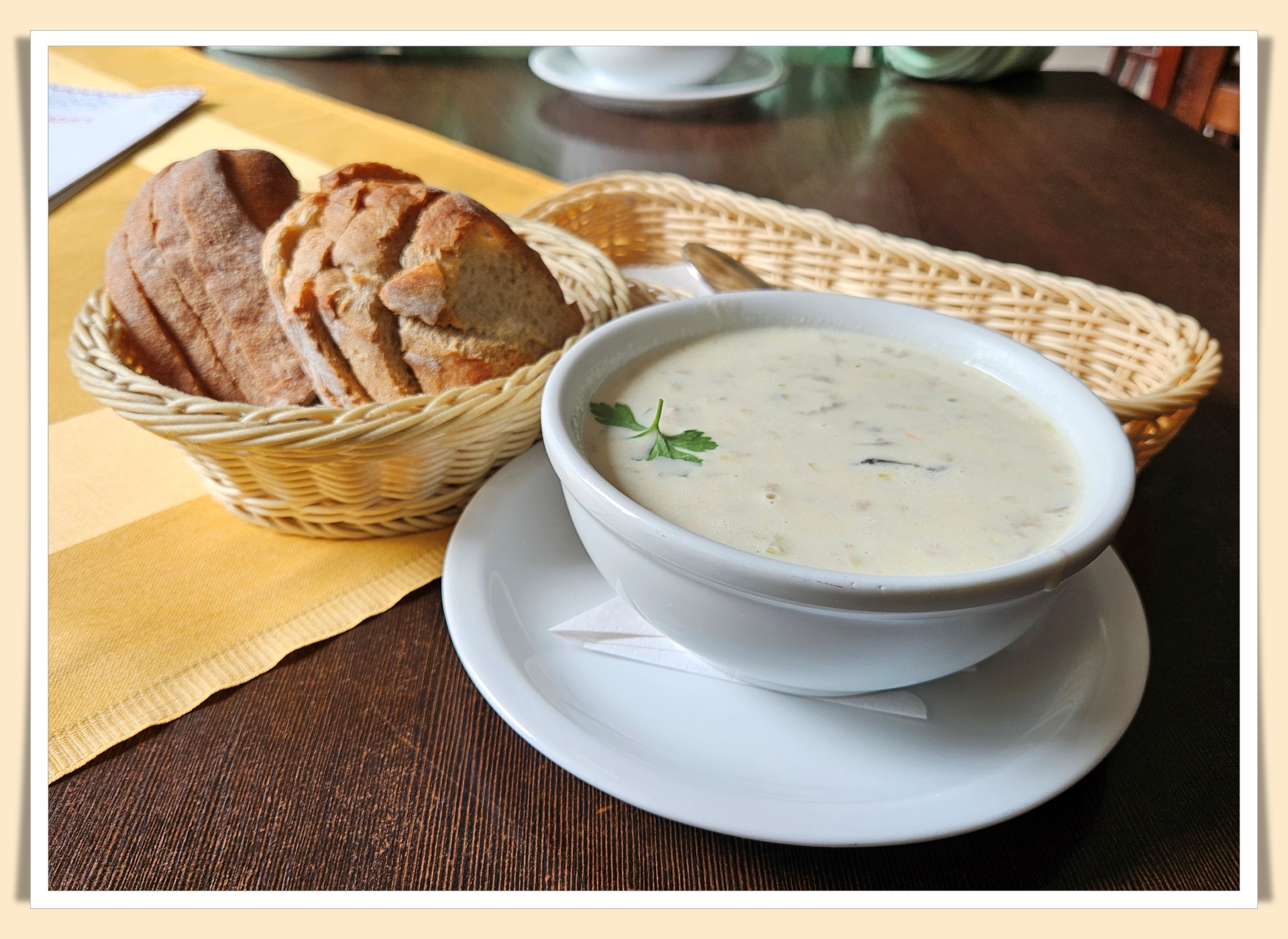 Znacie? Jeśli nie znacie, a przyjedziecie do Lanckorony, to musicie koniecznie spróbować. Ile razy jestem tyle razy zjadam a właściwie zajadam się tą zupą. Gdzie ją zjeść? Już piszę, ale najpierw anegdota. Pierwsza wizyta w Lanckoronie i pytanie kogoś z mieszkańców - Gdzie dobrze zjeść? Odpowiedź była zaskakująca. W GSie. Serio? Serio! Od tamtego czasu ten GS (Gminna Spółdzielnia - to dla młodych) zmienił kilka razy nazwę i właścicieli, ale zupa została (miejsce też - ulica Krakowska parę kroków poniżej urzędu gminy). I to jest najlepsze, co tam jest do zjedzenia. Dla mnie oczywiście. Karta dań bywa różna, ale pizzę, gruzińskie jedzenie, .... zjeść można wszędzie. Taką zupę tylko tam. Wprawdzie najlepiej smakuje z ciepłymi bułeczkami, ale pieczywo to tylko dodatek. Smacznego.