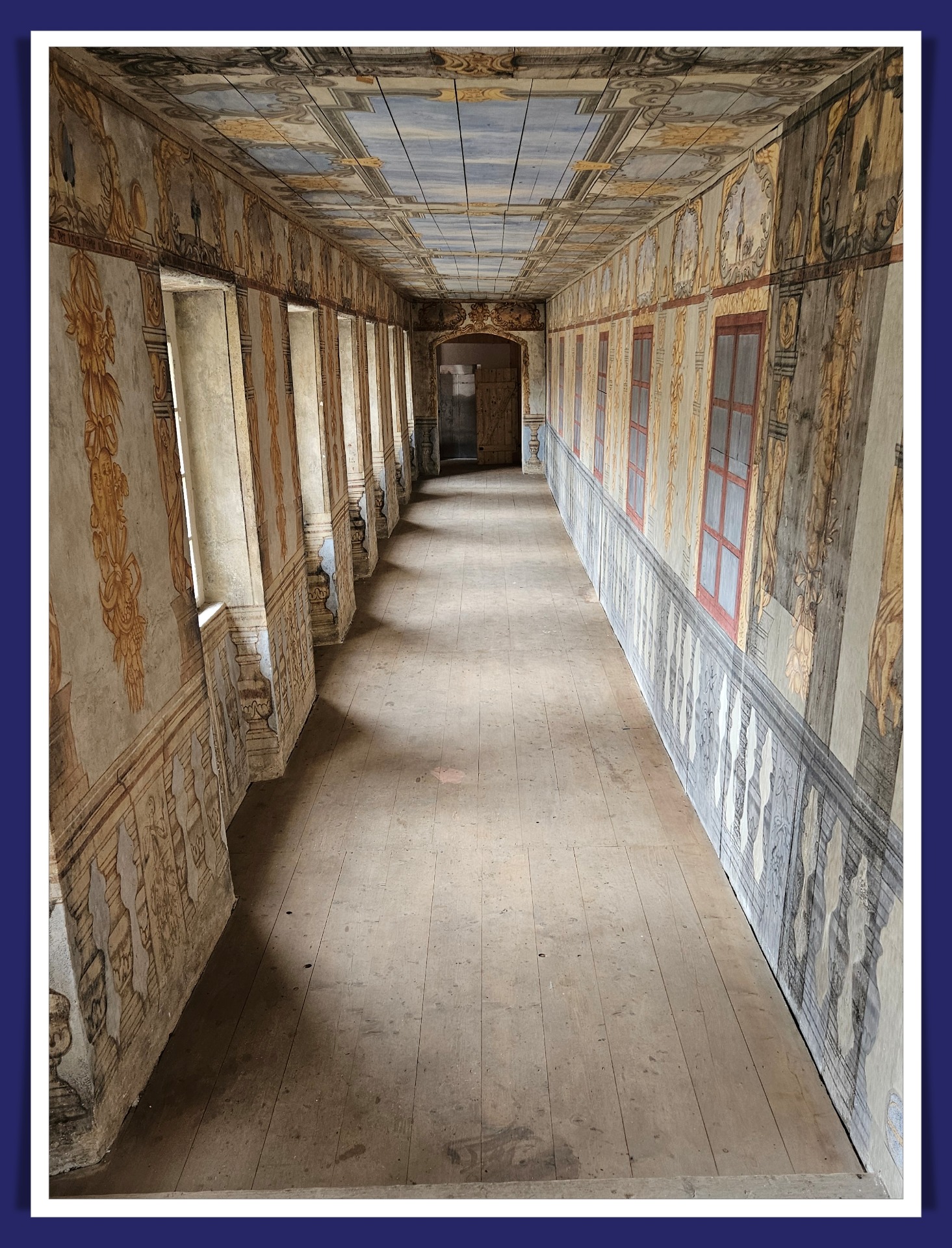 To chyba najbardziej znane miejsce w pałacu. Chyba każdy kto wszedł na piętro zrobił sobie tu zdjęcie. Co ciekawe korytarz powstał po zamurowaniu arkad pierwszego piętra.